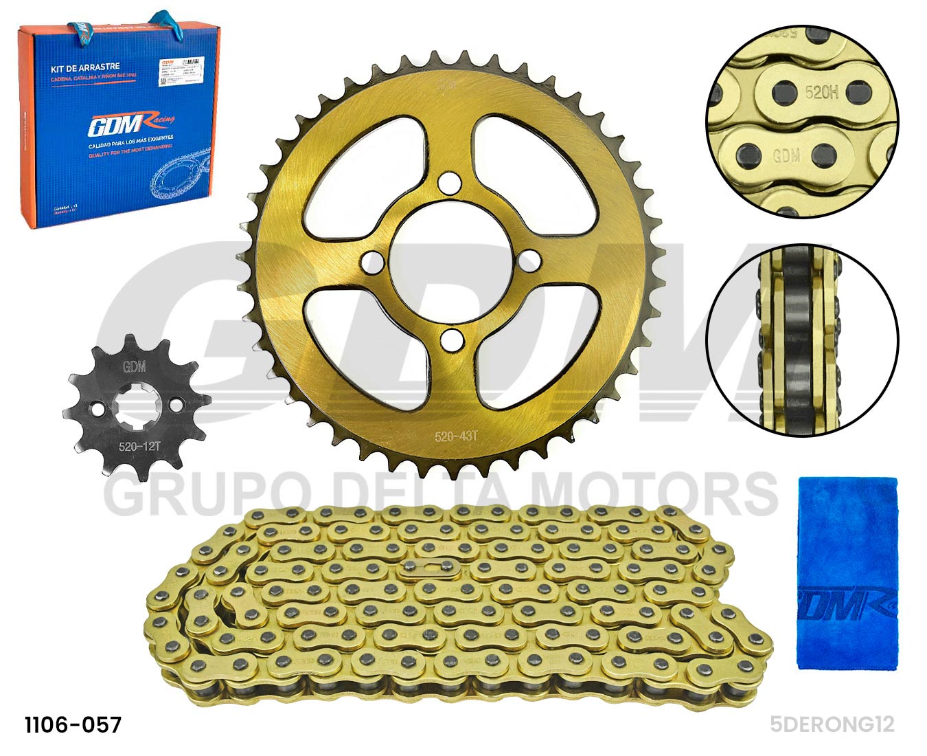 KIT ARRASTRE XTZ125 520HO-124L 43T/12T GDM